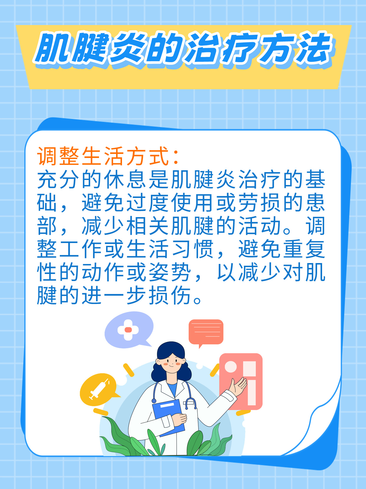 🎯那么,得了肌腱炎该怎么办呢?下面我给大家分享一些我的经验和建议📋:常见的治疗方法有饮食调理、调整生活方式、物理治疗、手术治疗等等。