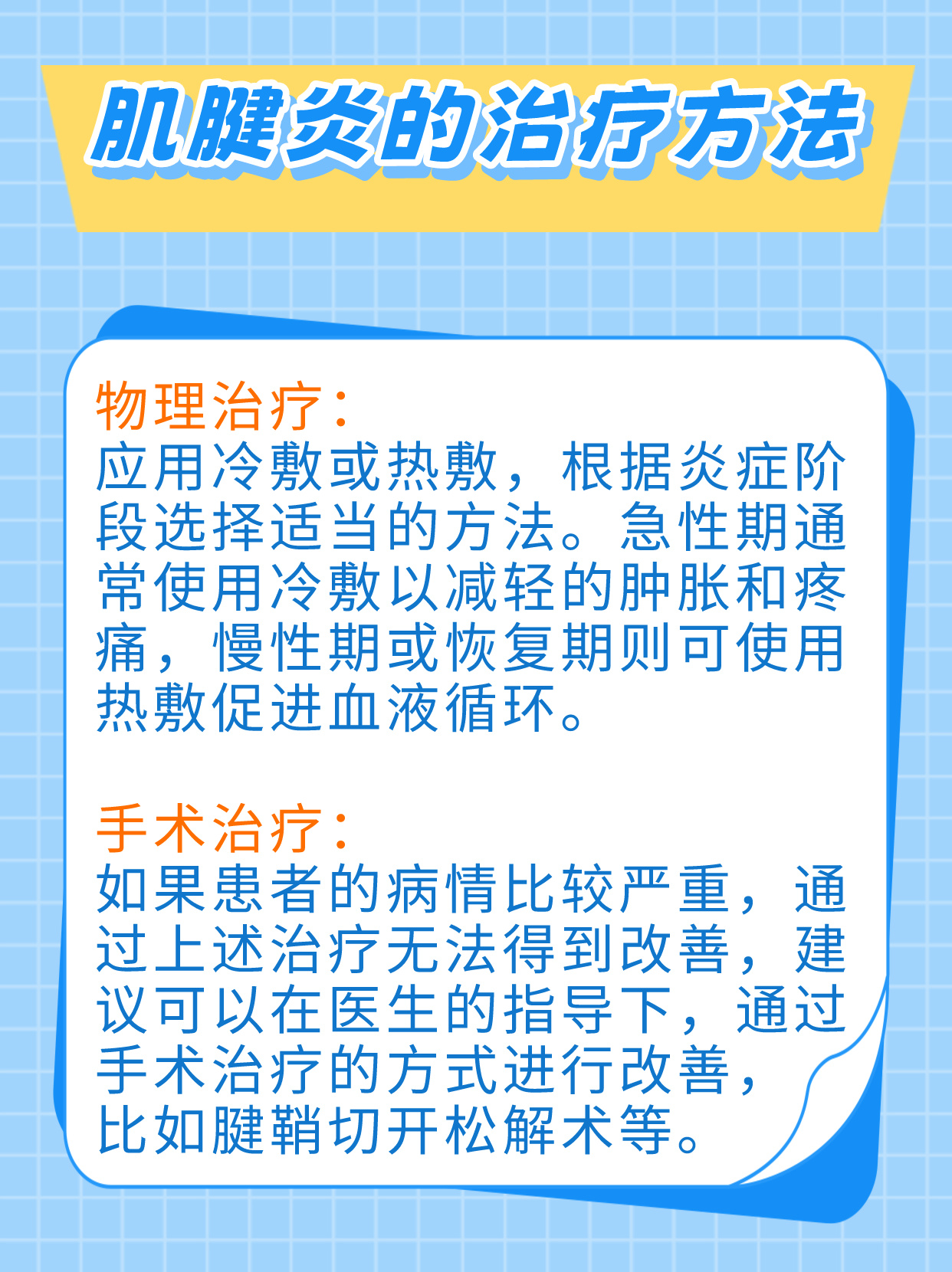 💗总之,肌腱炎虽然不是什么大病,但如果不及时治疗,可能会影响我们的正常生活🎯。