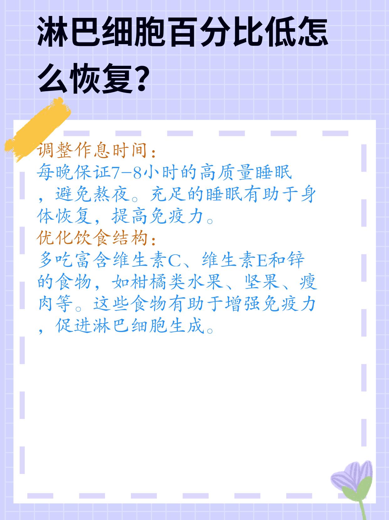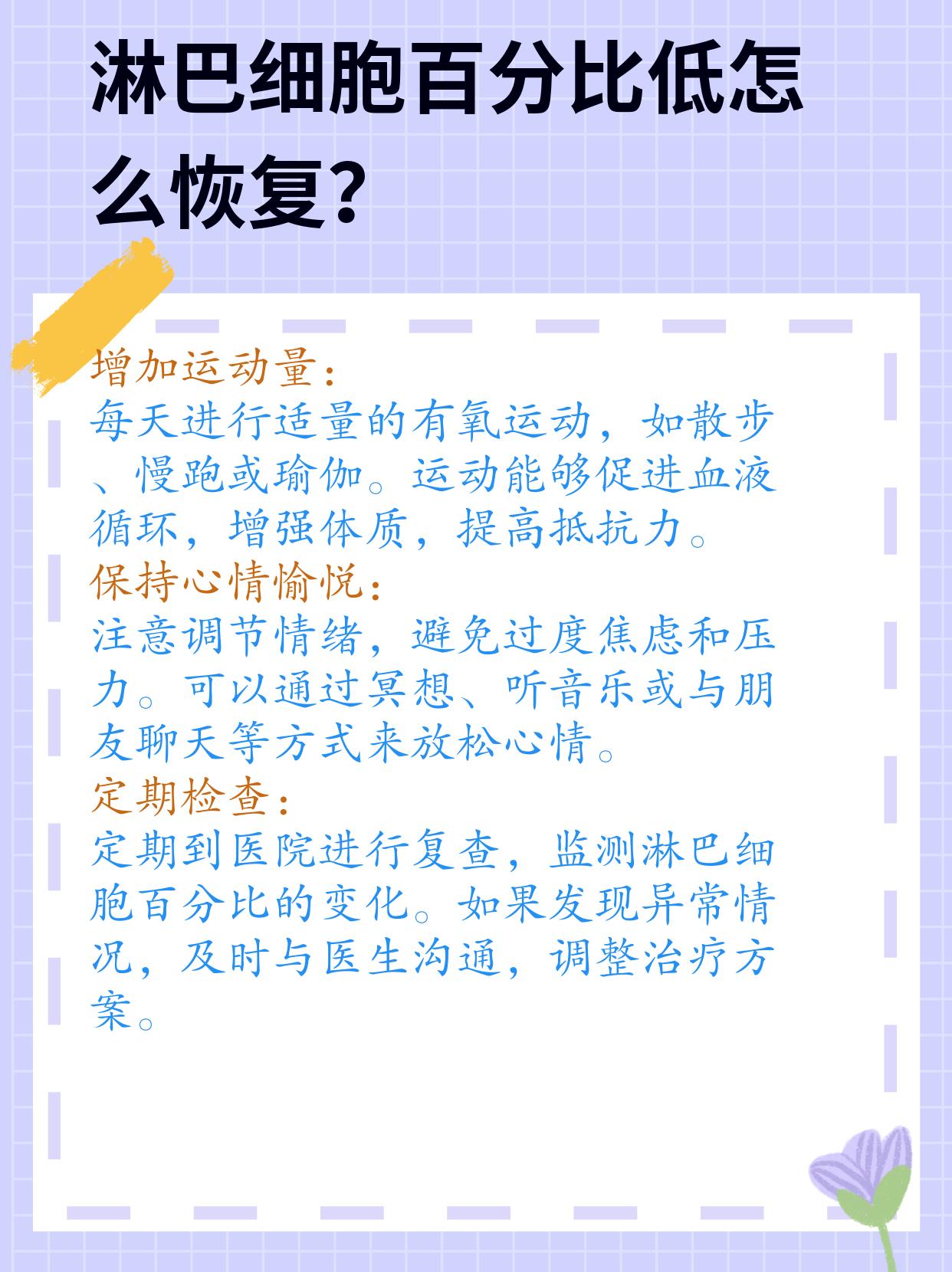 💡最后,我想提醒大家的是,淋巴细胞百分比偏低并不是无法解决的问题。只要我们积极调整生活方式,保持健康的生活习惯,就一定能够恢复健康。希望这些建议能对大家有所帮助!