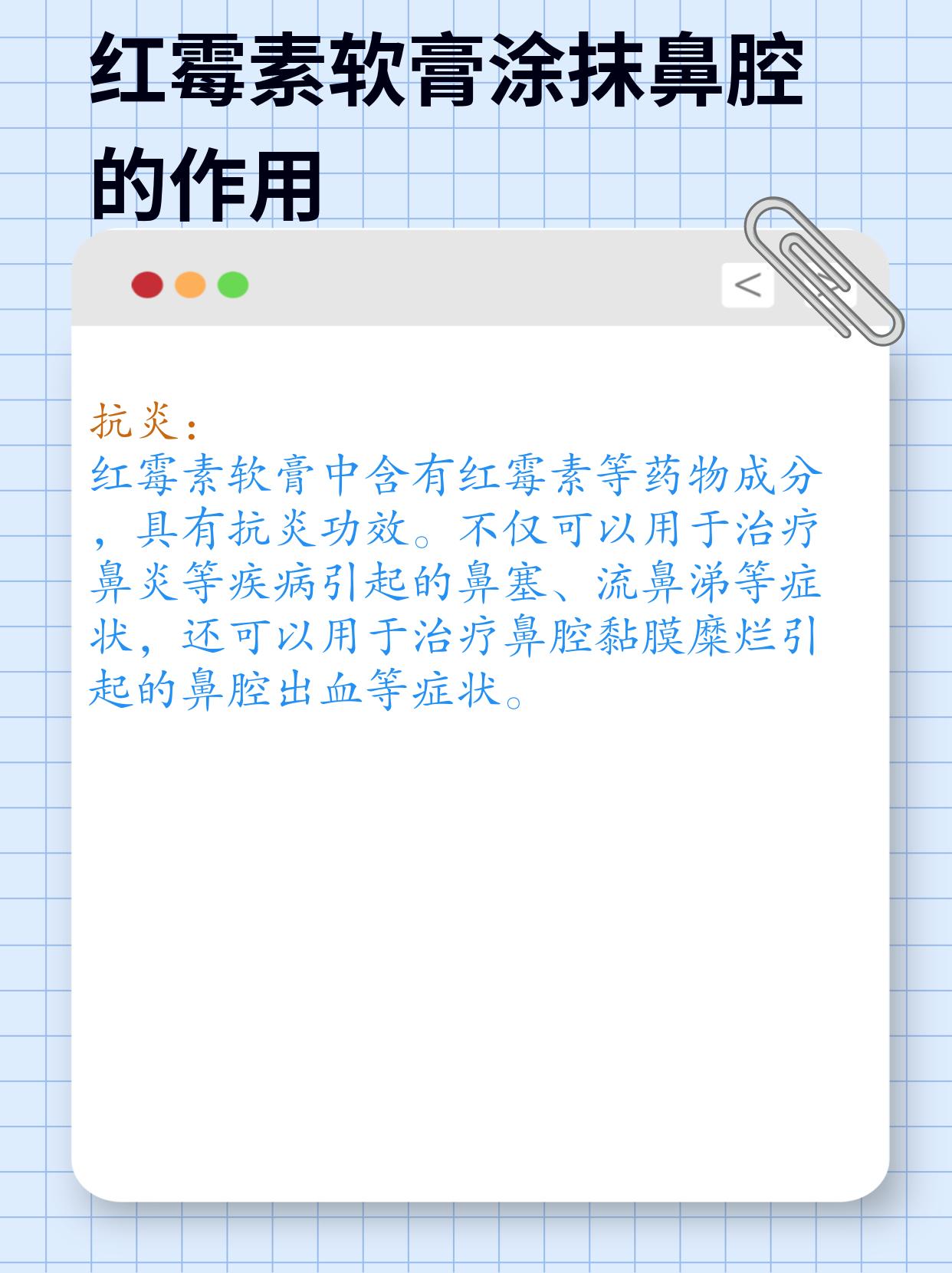 💗总之,红霉素软膏是一种简单有效的鼻腔护理用品👏,但使用时也要注意方法和剂量💊。