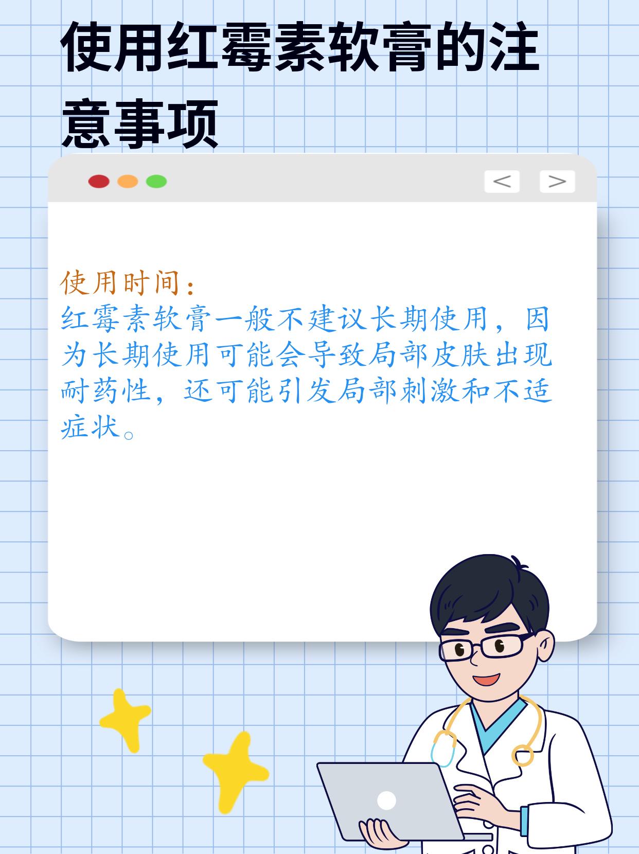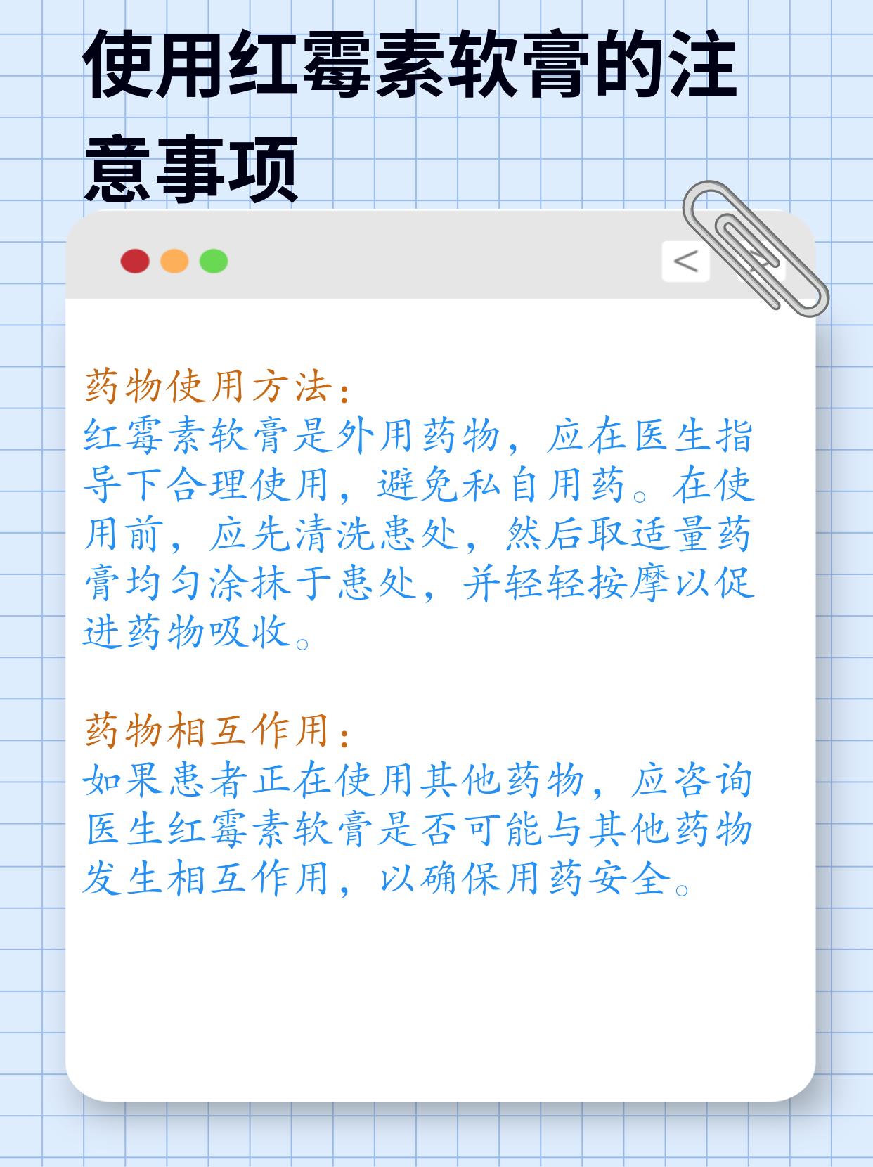 🤗使用红霉素软膏时,要注意药物使用方法、药物相互作用、使用时间。