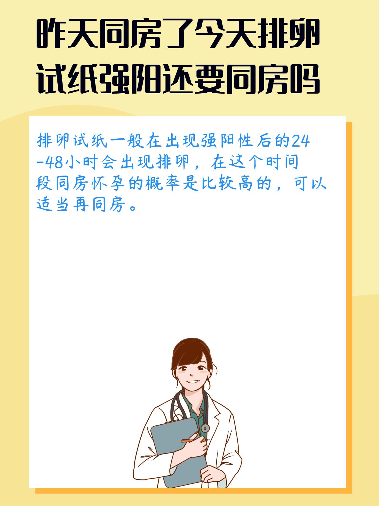 👩⚕️前段时间接诊了一位患者,新婚夫妻俩人在备孕,她很急切地来问我:“医生,我昨天刚同房了,今天测排卵试纸显示强阳,那我还要不要再同房呀😳?”这确实是很多备孕姐妹会遇到的困惑🧐。