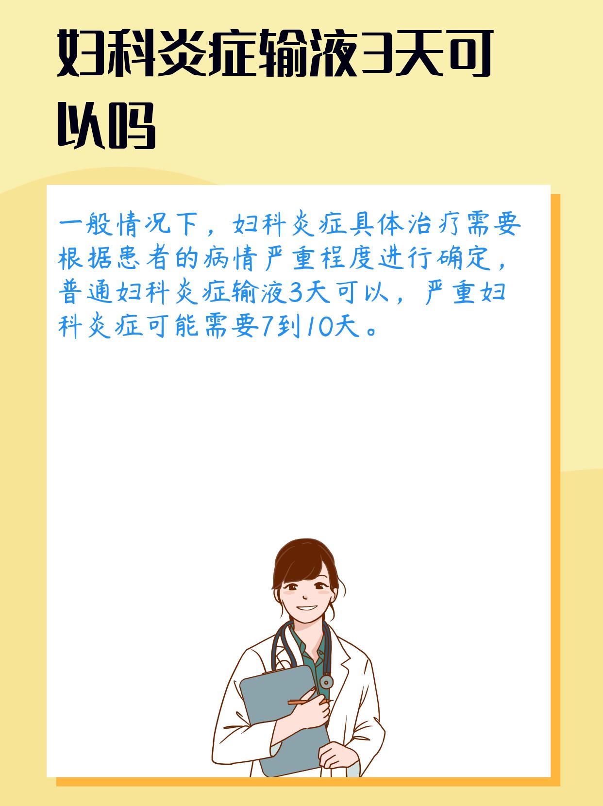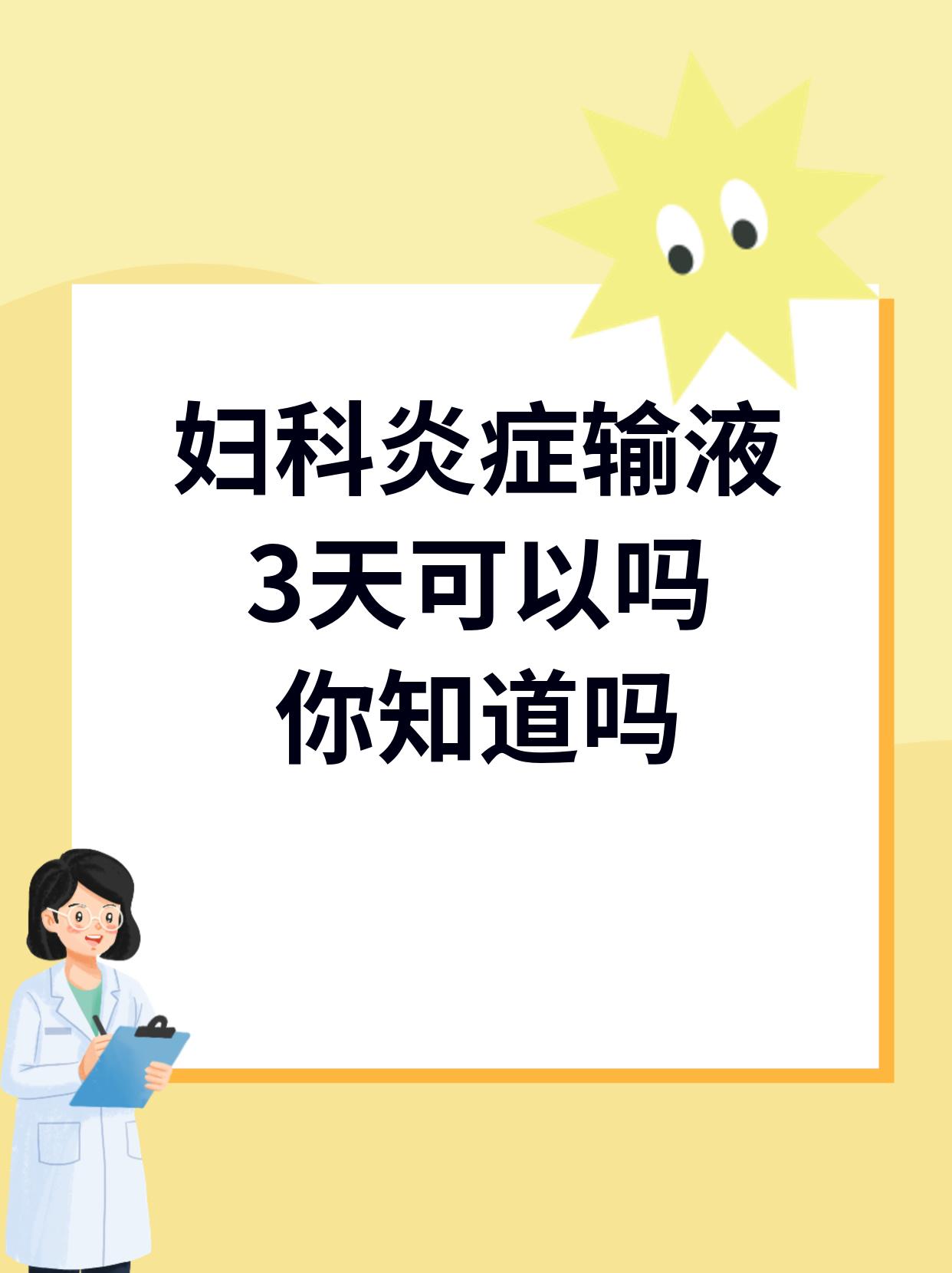 于是,她决定来到医院接受输液治疗。她问我:“医生,我妇科炎症犯了,输液3天可以吗?我听说这样可以快速消炎。”