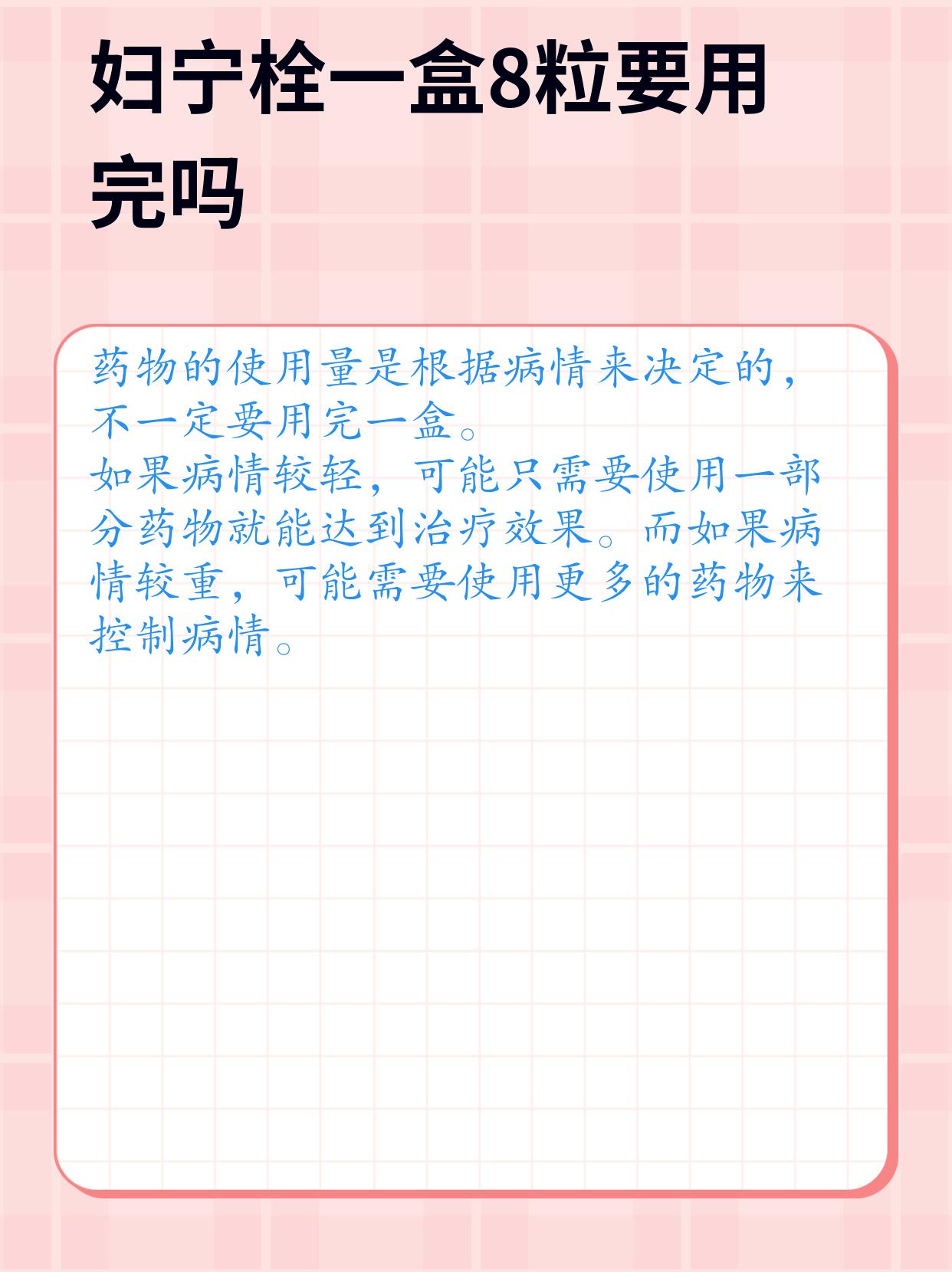 💊她拿到药后,问我:“医生,这一盒有8粒,需要全部用完吗?”我告诉她:“药物的使用量是根据病情来决定的,不一定要用完一盒。”