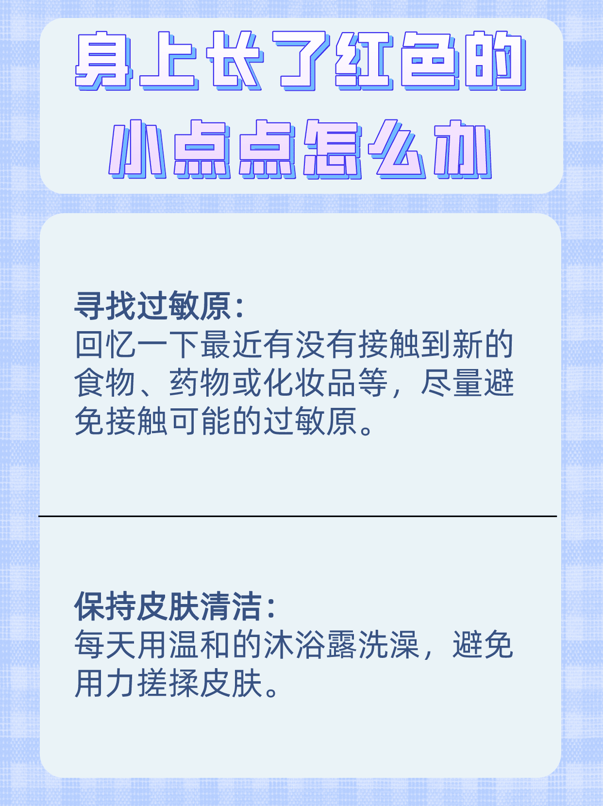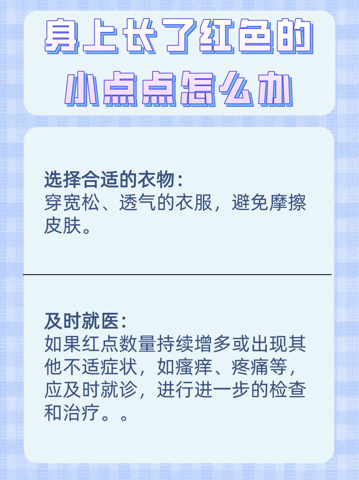 最后,我想提醒大家,如果身上出现不明原因的红色小点,不要惊慌,也不要自行用药🚫。及时就医,寻求专业医生的帮助,才能找到正确的治疗方法🎯。