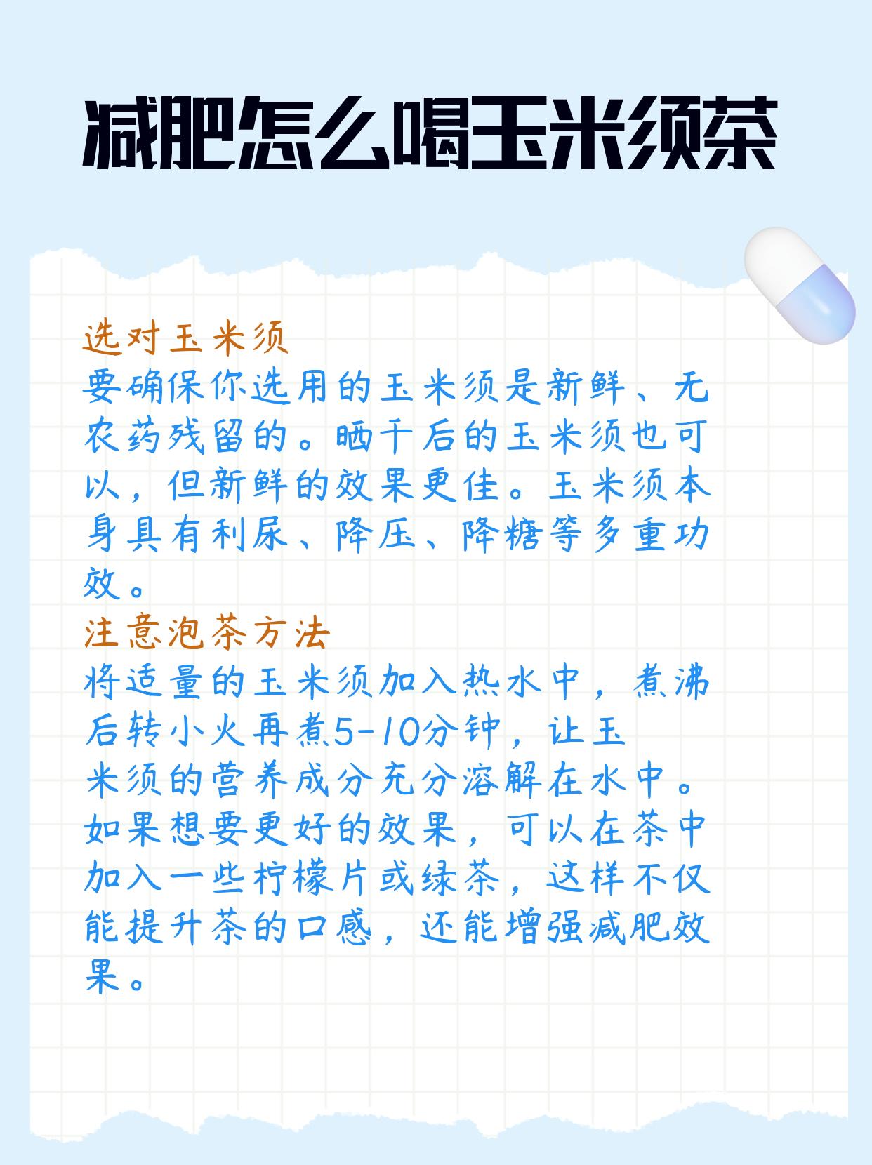 💡但要想让玉米须茶发挥最大的减肥功效,你需要注意选对玉米须、注意泡茶方法、注意最佳饮用时间、持续饮用等事项。