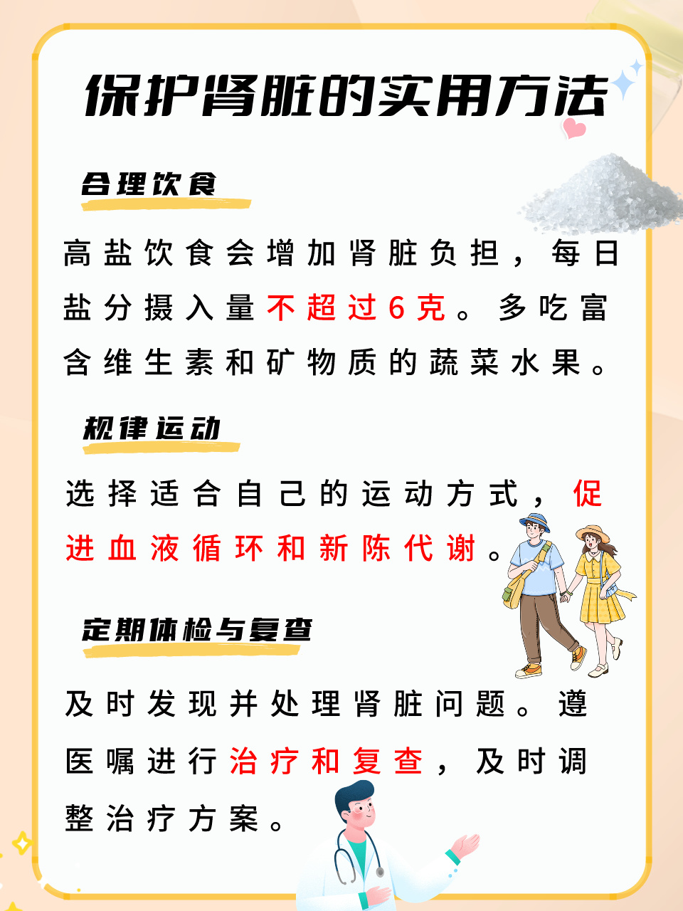 及时发现并处理肾脏问题。遵医嘱进行复查:对于已存在肾脏疾病的患者,要遵医嘱进行治疗和复查,及时调整治疗方案。