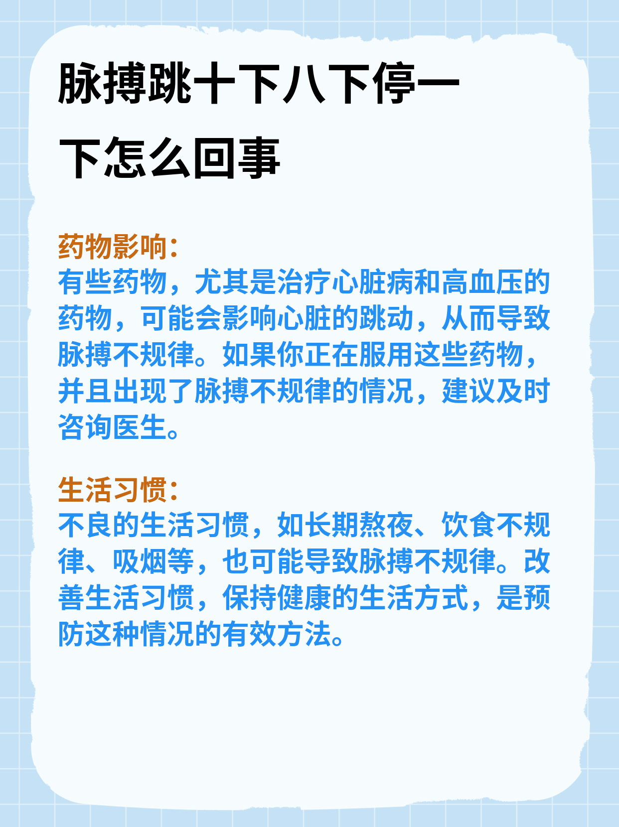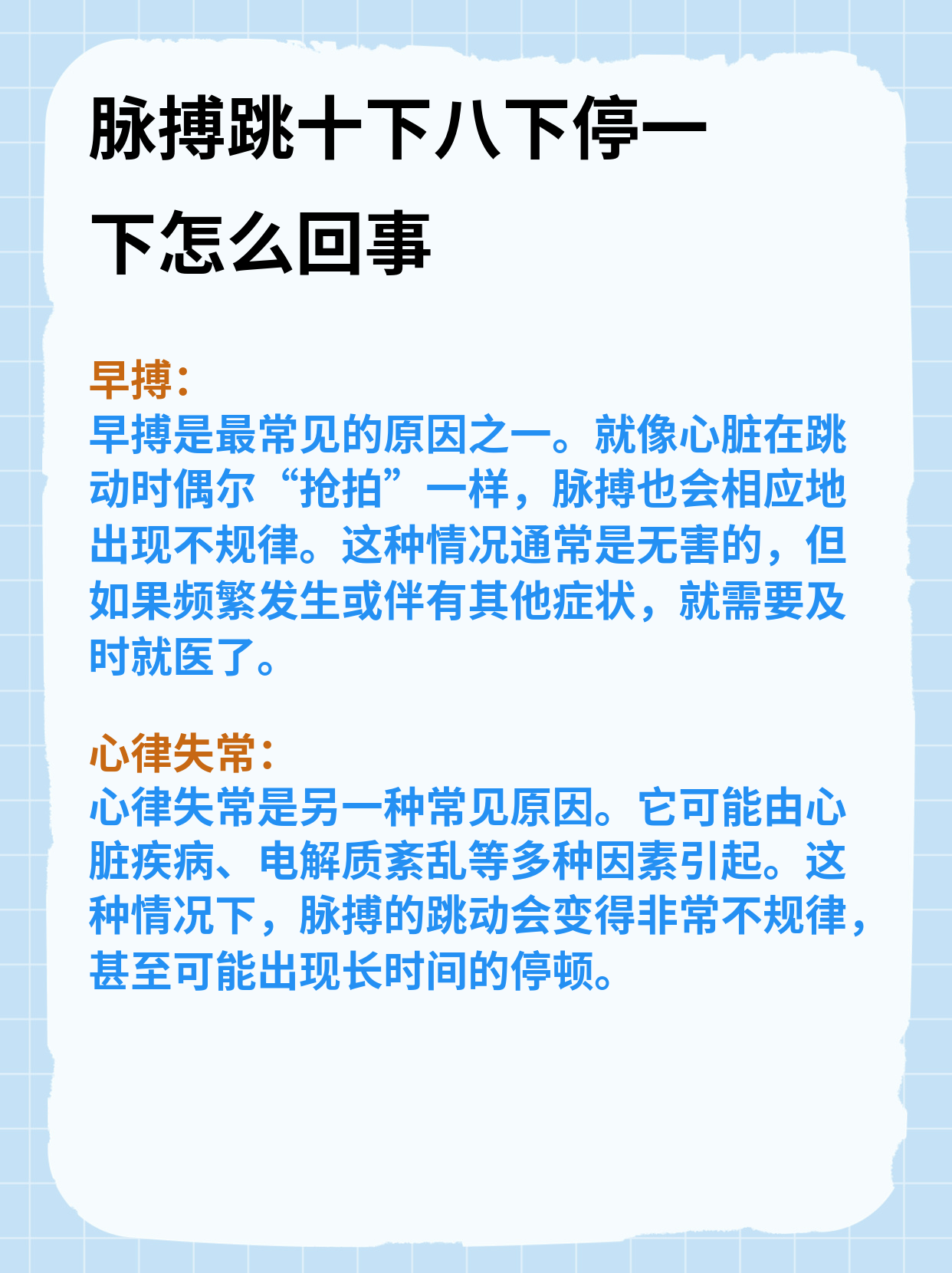 🩺💡前几天一个患者告诉我:他的脉搏跳十下八下就停一下,是不是身体出了大问题?今天,我就来跟大家讲解一下这个问题,帮大家了解其中的原因和处理方法。