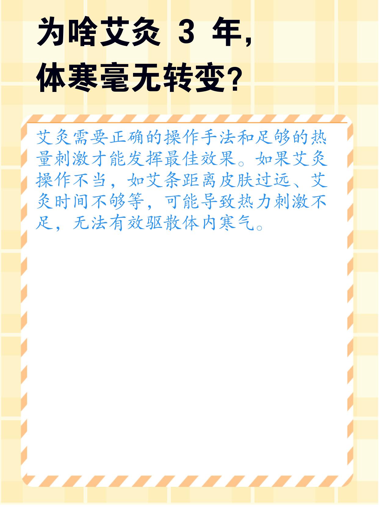 🎈上周,一位33岁的女士来找我,她一脸苦恼地说:“医生啊,我都艾灸 3 年了,可这体寒的问题还是没改变呀😩。”