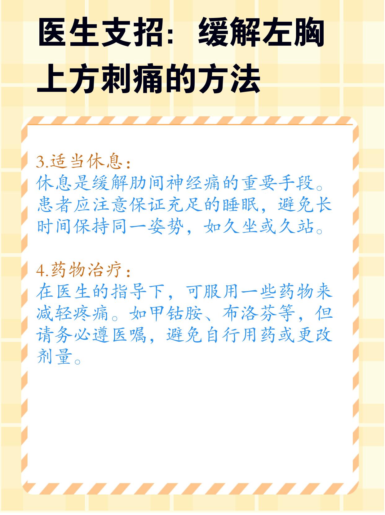 💔我仔细询问了他的病史和生活习惯,并进行了详细的检查。告诉他,他的症状是由肋间神经痛引起的。