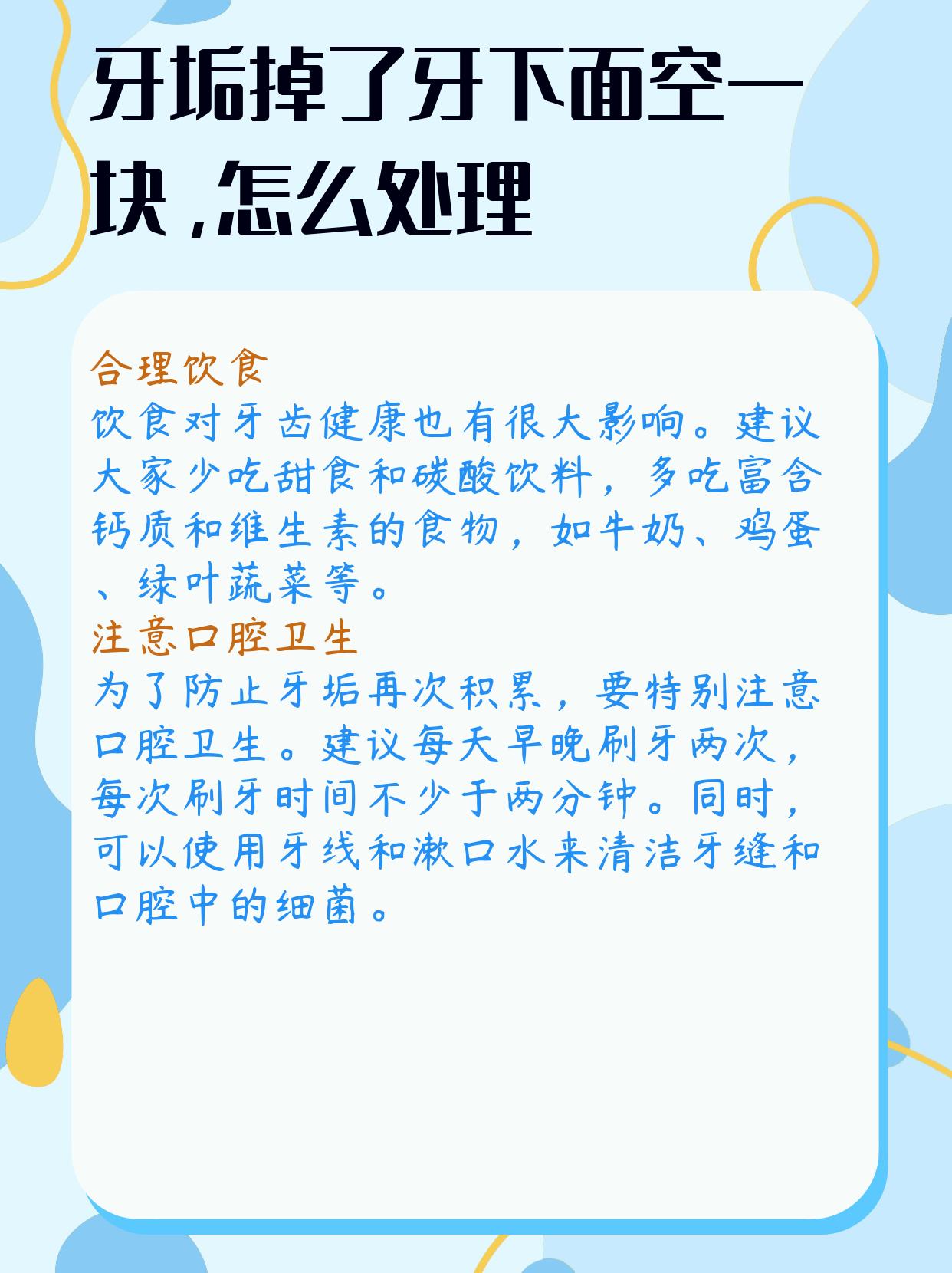 😅 然后,我告诉她,这是牙垢,就是牙齿表面的细菌和食物残渣的混合物,长期积累下来会形成硬硬的牙结石。当牙结石被清除后,牙齿下面的空隙就会暴露出来,给人一种“空了一块”的感觉。