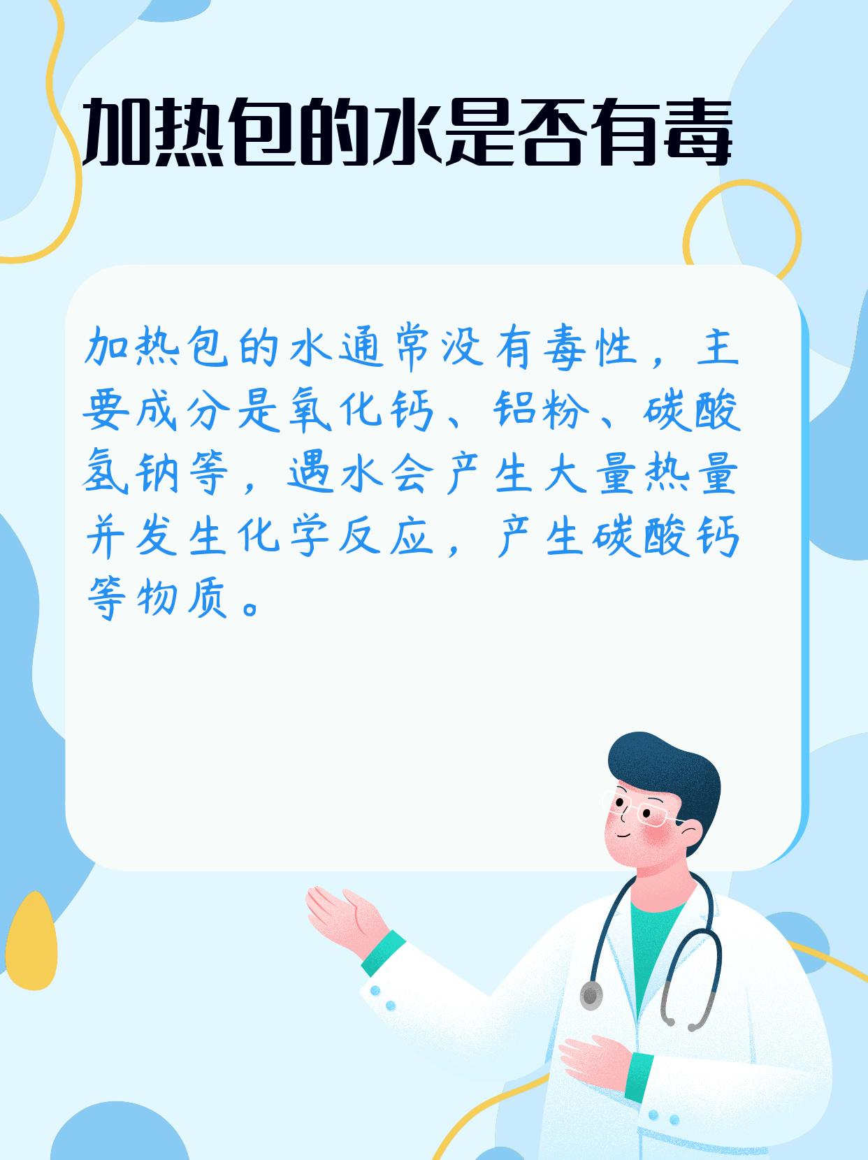 加热包中的成分各不相同,有些可能含有对人体有害的化学物质。当这些物质与水接触并加热时,可能会释放出有毒的气体或液体。因此,如果加热包的水被误食或接触到皮肤,确实存在一定毒性。