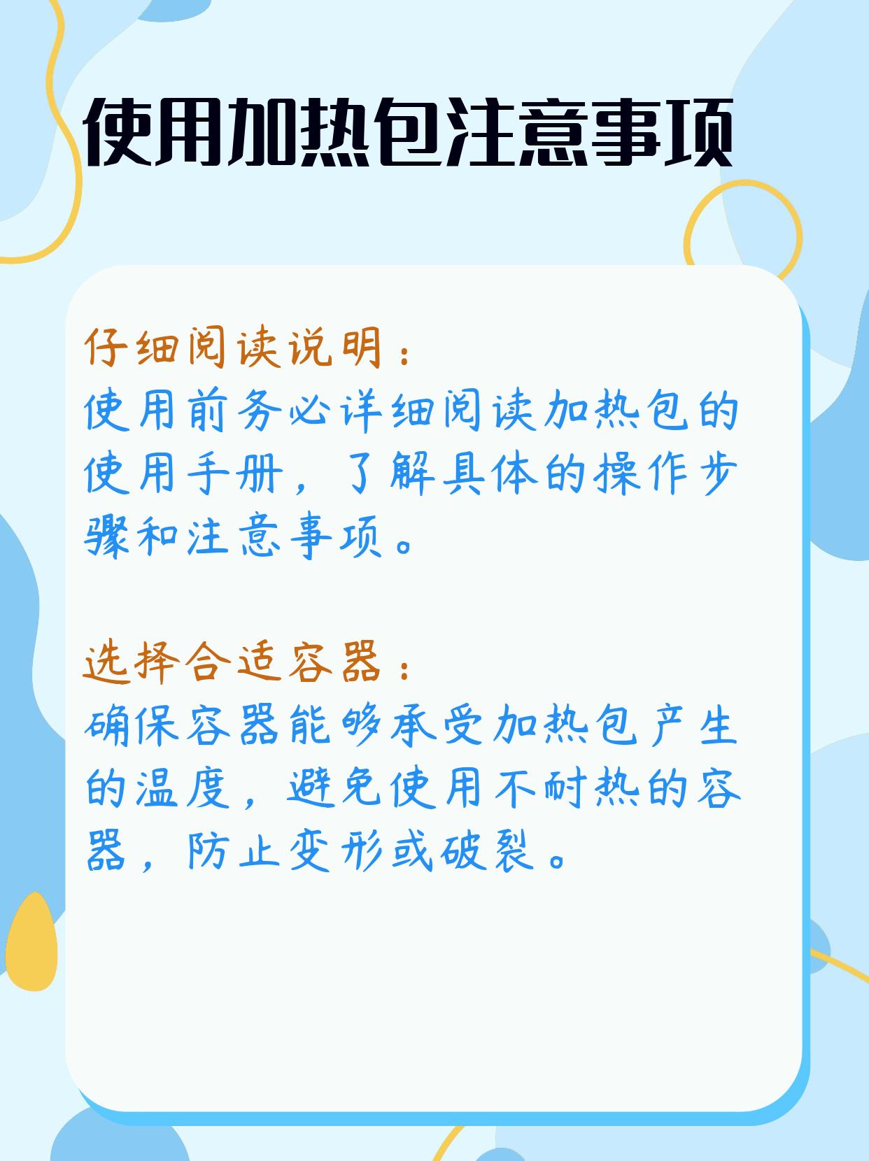 我们要明确加热包的用途和正确使用方法。加热包通常用于自热食品或户外活动中,但并不能直接食用或接触皮肤。