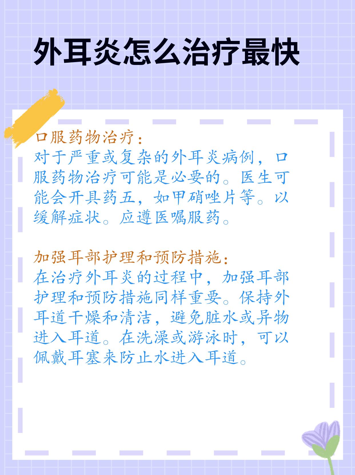 包括彻底清洁外耳道、选用合适的滴耳液、口服药物治疗、加强耳部护理和预防措施等。