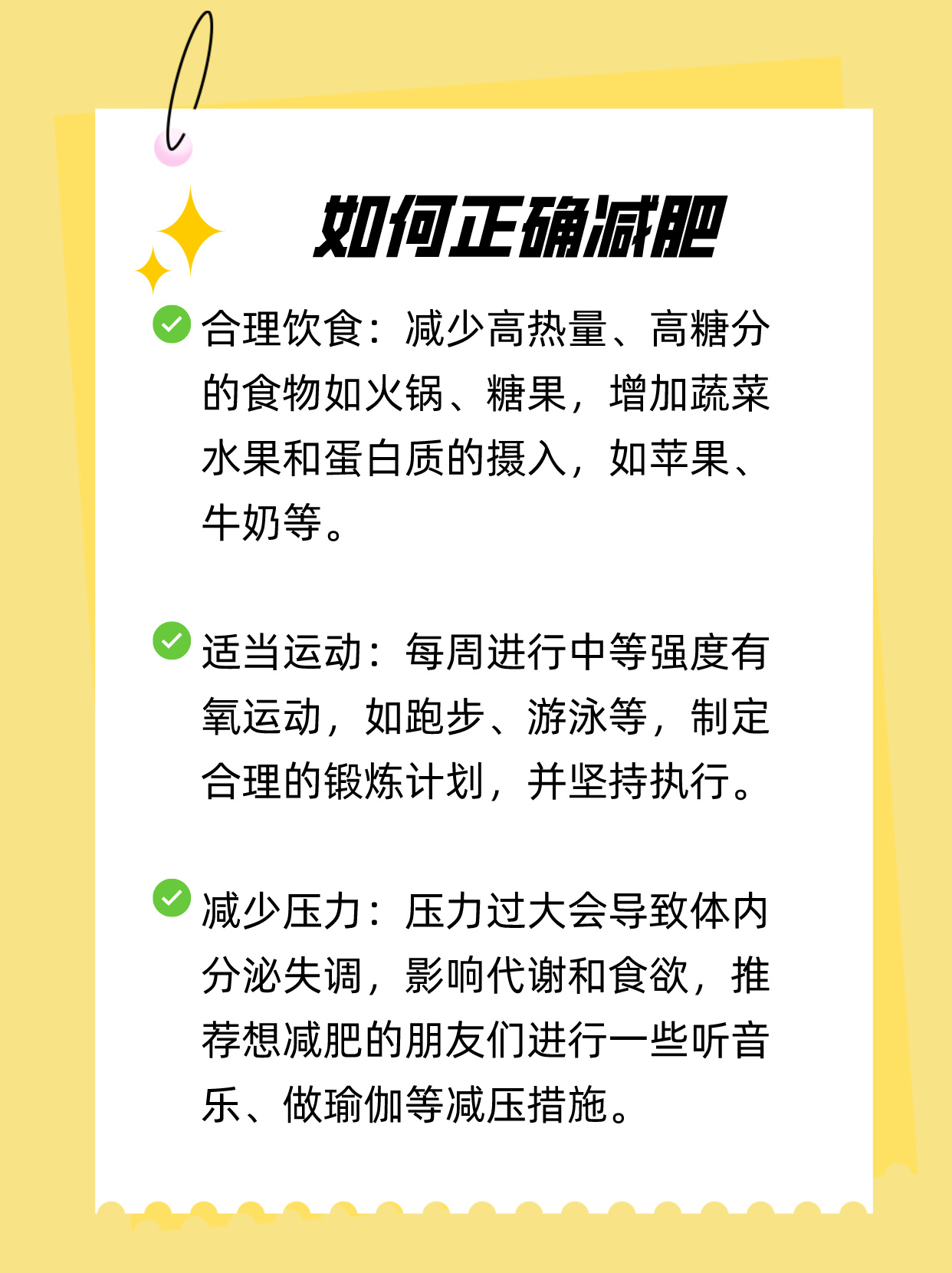 一些对体型有要求,或需要减肥的朋友要特别注意如何正确减肥,最好根据自己的实际情况制定适合自己的减肥计划,综合考虑多个方面,合理饮食、适当运动、减少压力等是我的一些建议。大家也可以寻找适合自己的方法哦。🔍