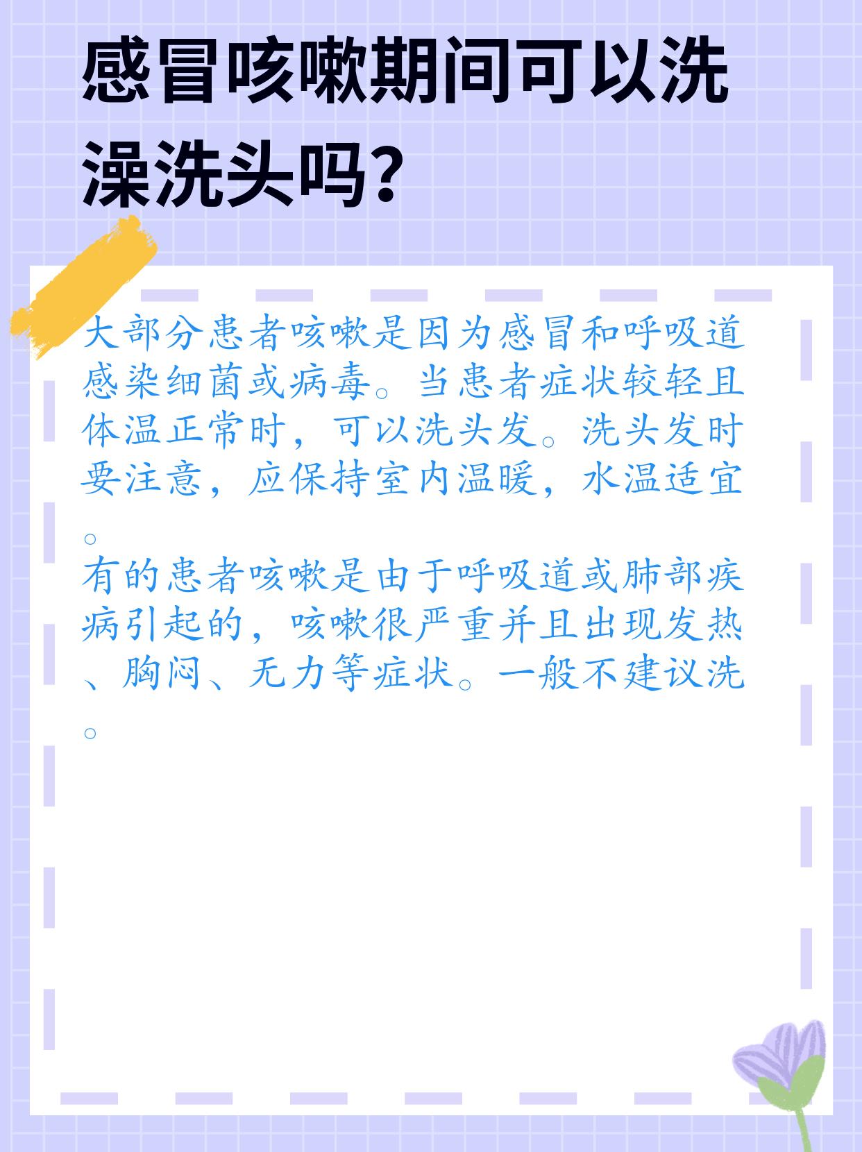 🤒家人们,我在门诊经常遇到患者问:“医生,我感冒咳嗽了,还能洗澡洗头吗?”今天就来和大家聊聊这个话题。